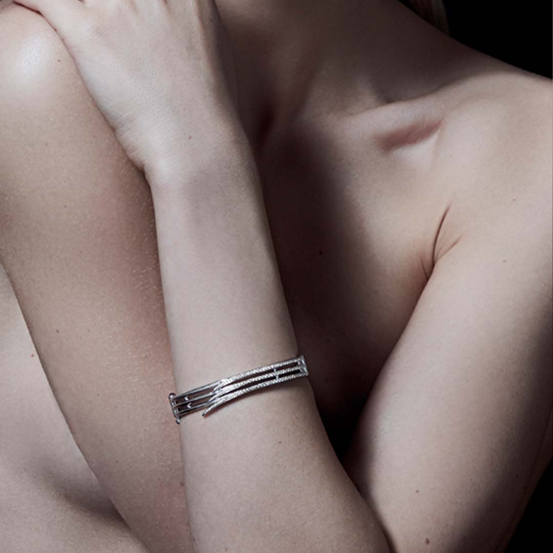 Armis Triple Row Bangle - 18ct White Gold & Diamond Pavé