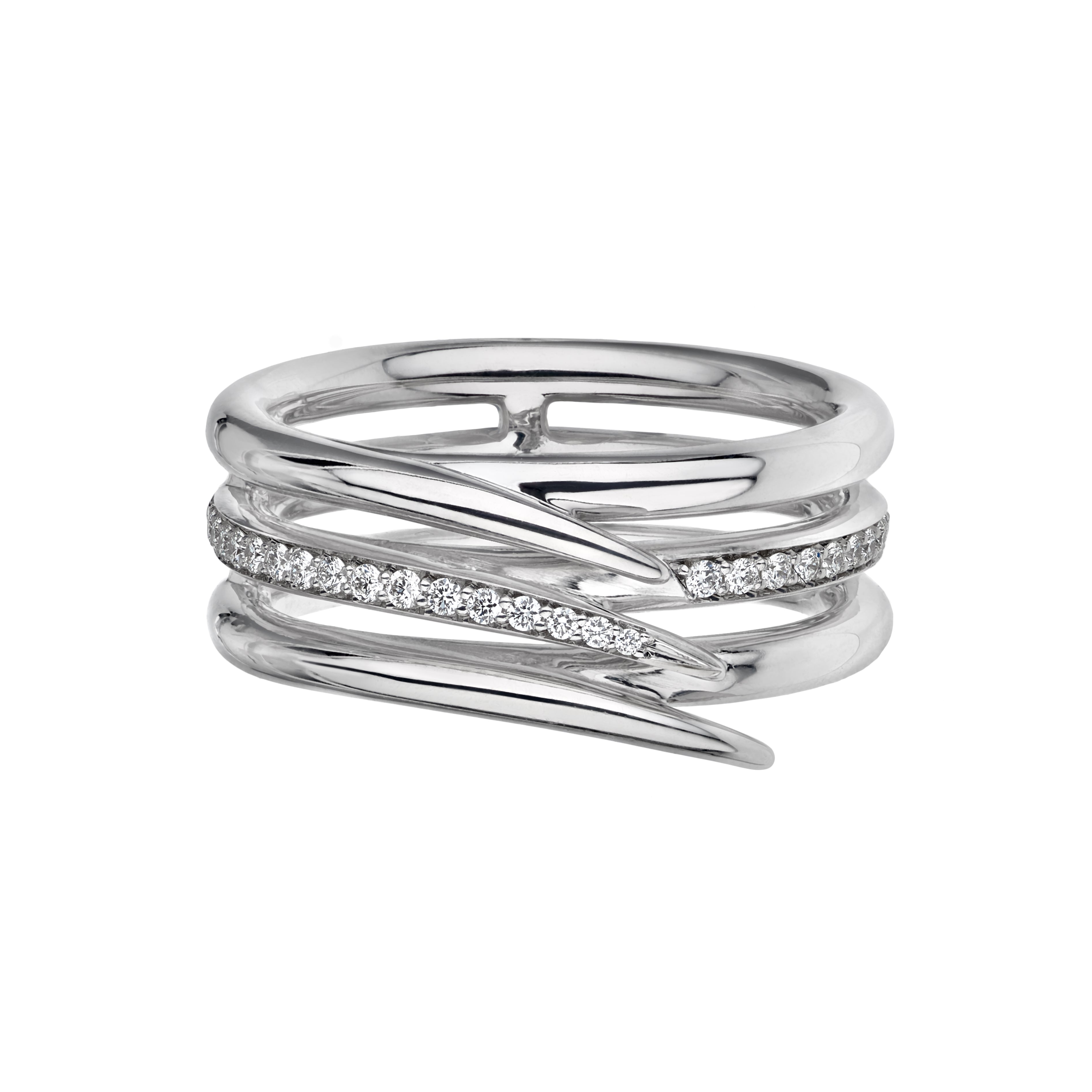 Armis Single Row Ring is crafted from 18ct white gold and 0.20cts of brilliant white diamonds, a classic piece by the House of Shaun Leane. Designed to be worn with other interlocking Armis rings, a single row of diamond pavé encloses the finger. Our milestone rings are timeless, precious, iconic - pieces you will never want to be seen without.
