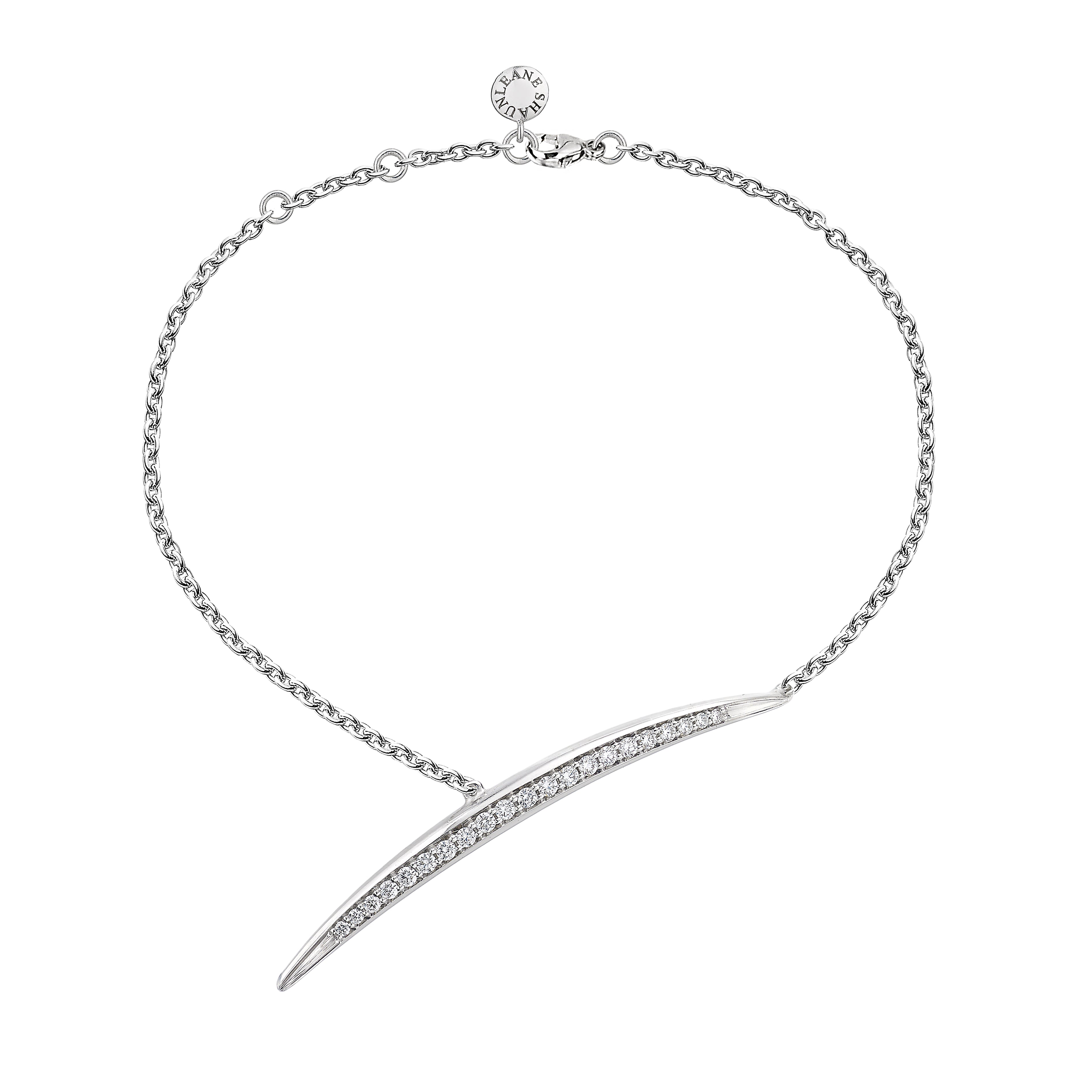 Armis Single Bar Bracelet is crafted from 18ct white gold and 0.19cts of brilliant white diamonds, a classic piece by the House of Shaun Leane. Our Armis collection is inspired by a fierce romance that signals the warrior within. Featuring our iconic Armis silhouette - an elegant sweep of diamond pavé beautifully tapered to the wrist, illuminating the wearer. Paired with the most delicate of chains, impeccably made at our Mayfair atelier.