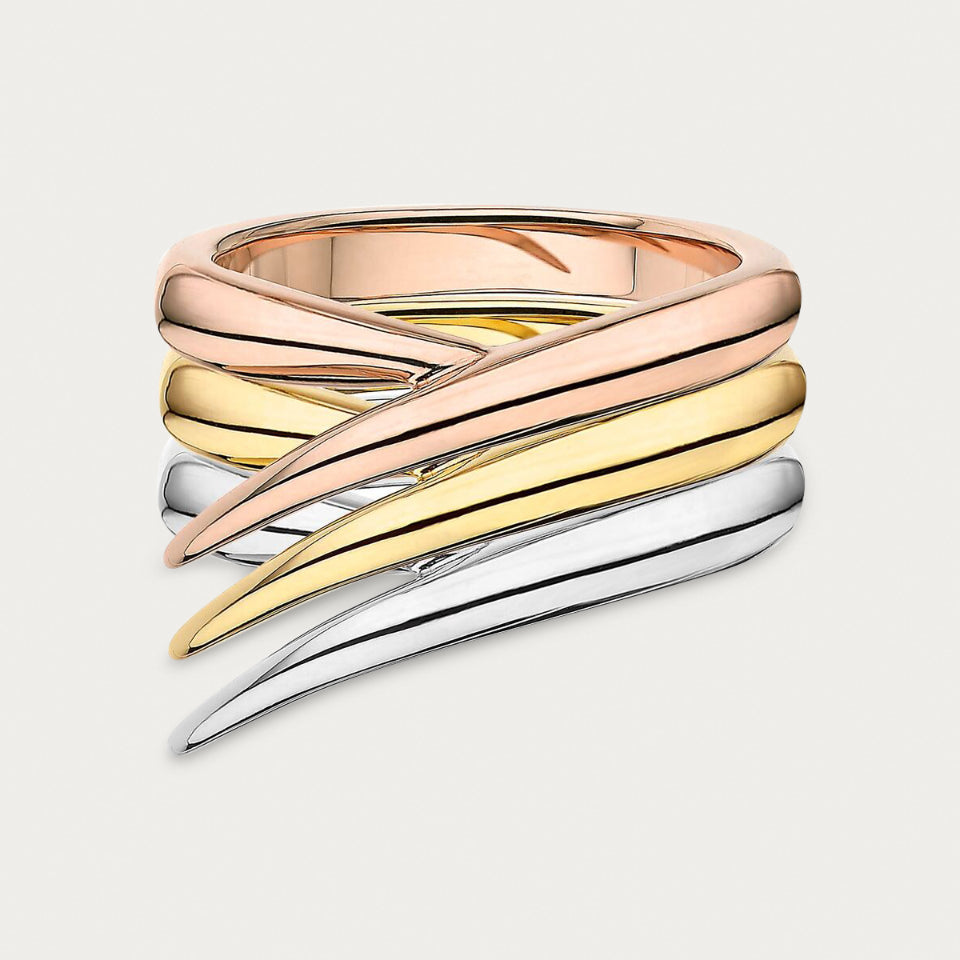 White Gold, Rose Gold, Yellow Gold, and Black Rhodium