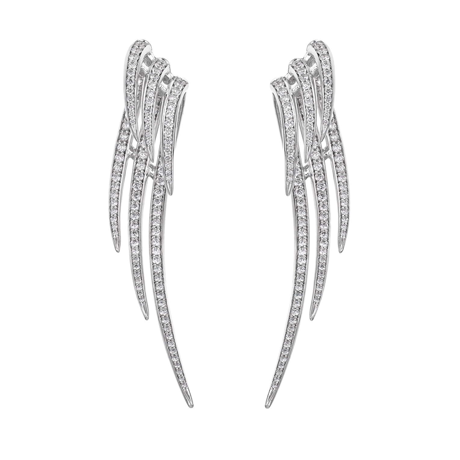 Armis Triple Hook Drop Earrings - 18ct White Gold & Diamond Pavé