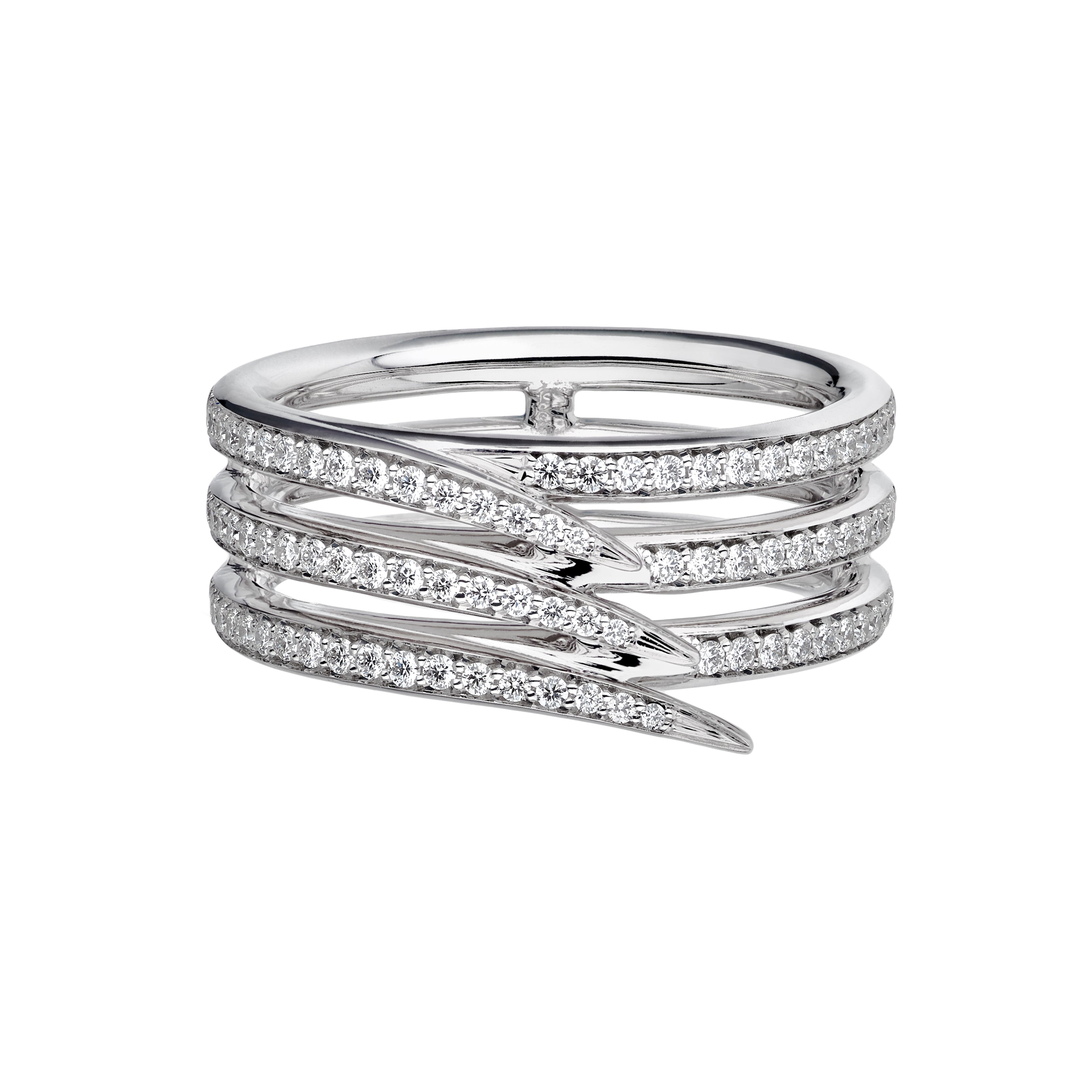 Armis Triple Row Ring is crafted from 18ct white gold and 0.67cts of brilliant white diamonds, a classic piece by the House of Shaun Leane. Designed to be worn with other interlocking Armis rings, a sequence of diamond pavé curves enclose the finger in a powerful, interconnected geometry. Our milestone rings are timeless, precious, iconic - pieces you will never want to be seen without.