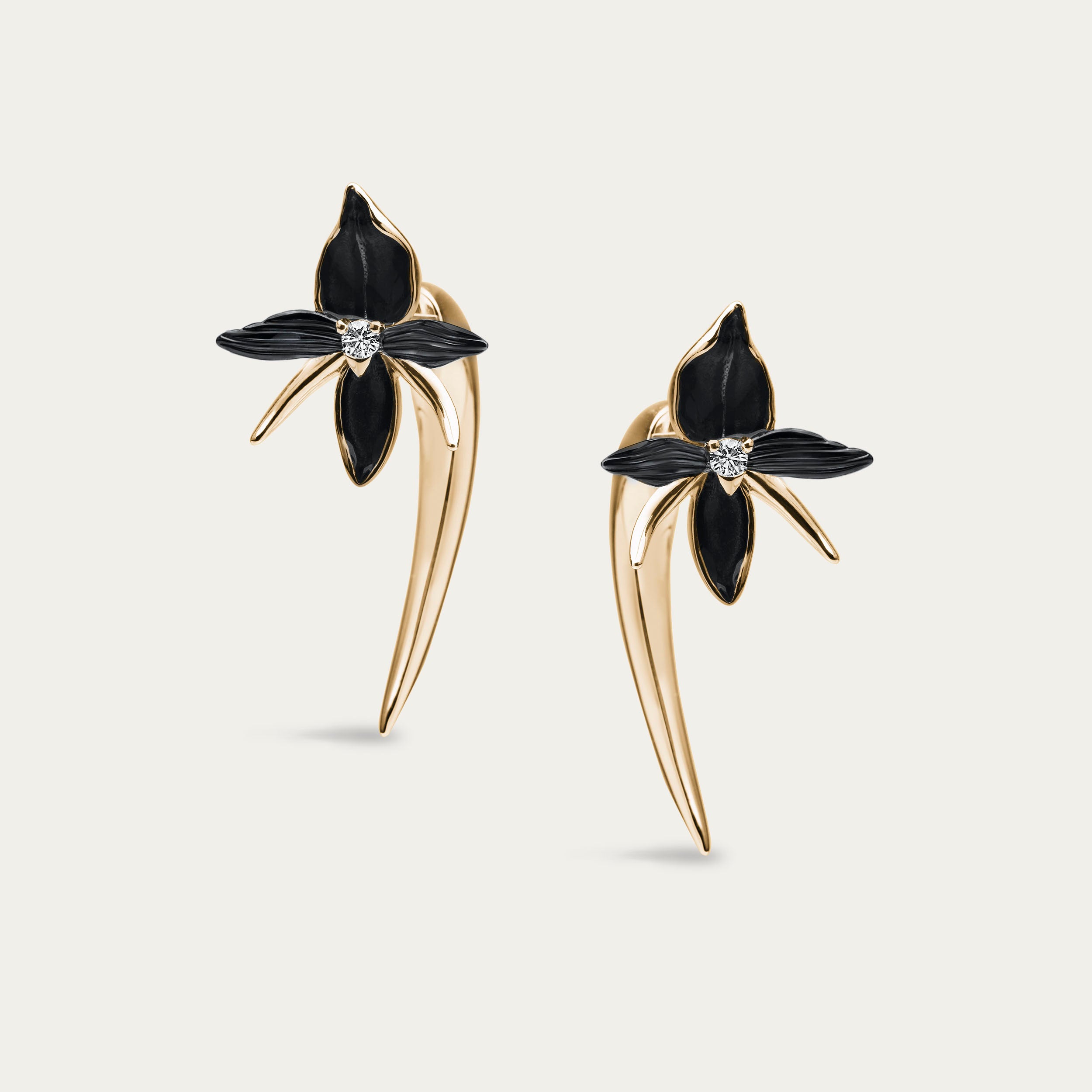 Black Orchid Talon Earrings - Yellow Gold Vermeil & Diamond