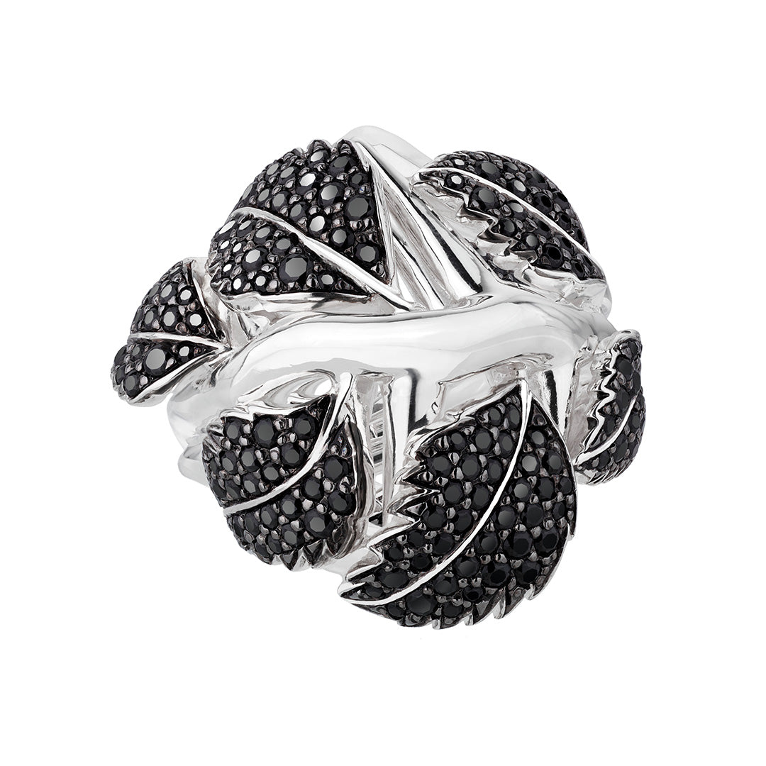 Blackthorn Leaf Ring is handcrafted from sterling silver and black spinel. The wild, rural beauty of the Macgillycuddy’s Reeks mountains inspires a collection of sensual, otherworldly designs for Blackthorn. Intricately designed to show stopping effect; a bejewelled Blackthorn leaf encloses the finger, articulated sterling silver “veins” and “blades” of shimmering black spinel pavé, create a wave of resplendent monochrome. In Blackthorn, Shaun Leane’s lyricism and love of nature blooms into a fuller, richer life. Made to be worn oversized, the Blackthorn Leaf Ring has substantial weight on the finger, offset beautifully by its figurative silhouette. Each design evokes a miniature landscape, combining texture and tactility, in luxurious materials. A celebration of botanical beauty sits at the heart of our House code, Flora - in a singular style, unmistakably the House of Shaun Leane.
