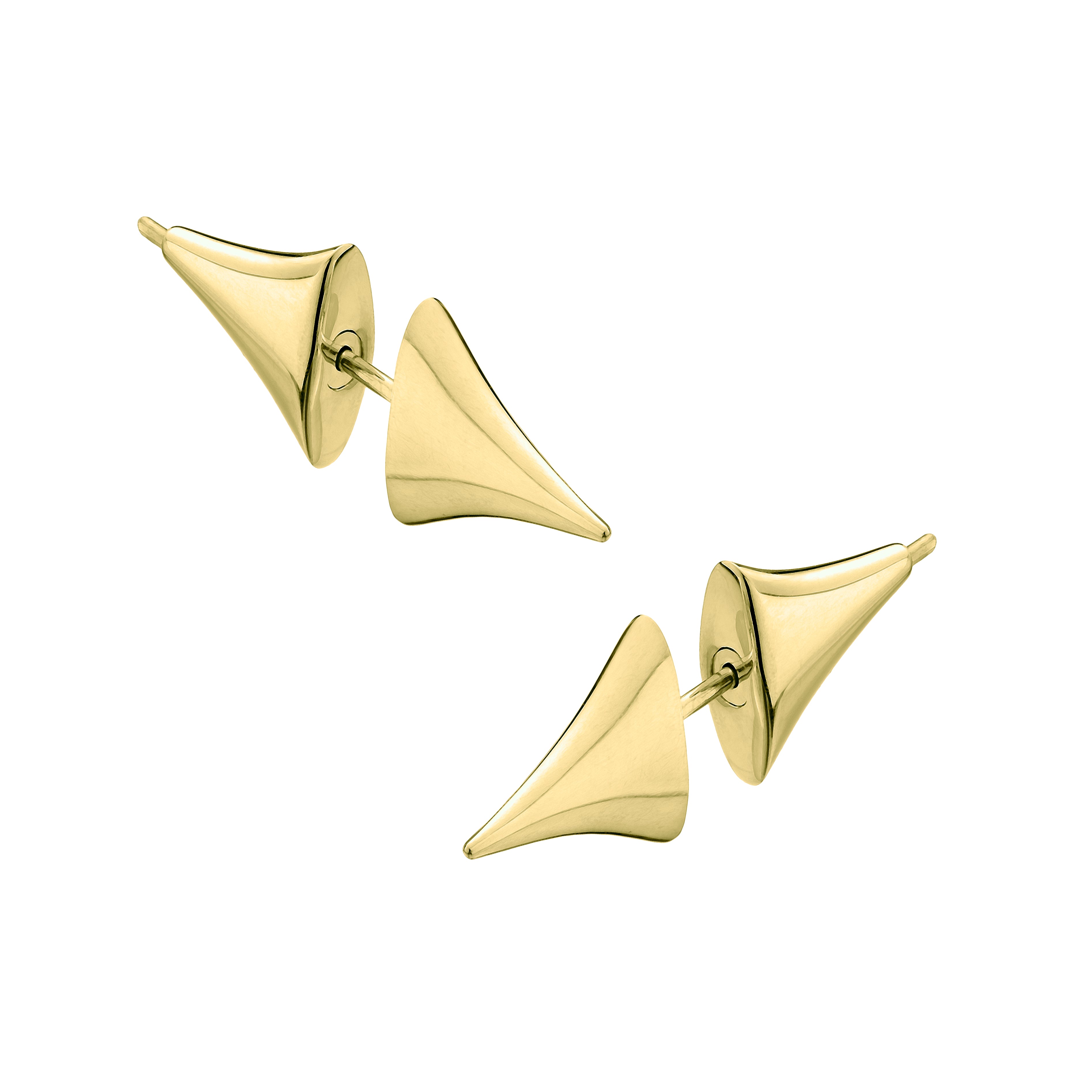 Rose Thorn Bar Earrings are handcrafted from yellow gold vermeil. In Rose Thorn, Shaun Leane's free and melodious style takes on a fuller, richer life. Bulbous, tactile thorns pierce the ears either side in an elegant clasp, emotive curves of polished yellow gold vermeil that terminate with a sharp point. Rose Thorn's innovative design is a two-piece construction, seamlessly fitting together, creating a fluid double-thornshape through the ear, securely fastened in place. The Rose Thorn revisits the pointed yellow gold thorn studs from the Alexander McQueen runways of the 1990s, where Shaun Leane placed them on models' faces with free-spirited creativity. In smaller sizes, Leane achieves the absolute essence of nature in an intimate, personal manner. Rose Thorn sits at the heart of our House code, Flora; a celebration of botanical beauty that is the symbiosis of Leane's emotive handwriting. Experience a sensation of emotions. Available in a variety of precious metal finishes.