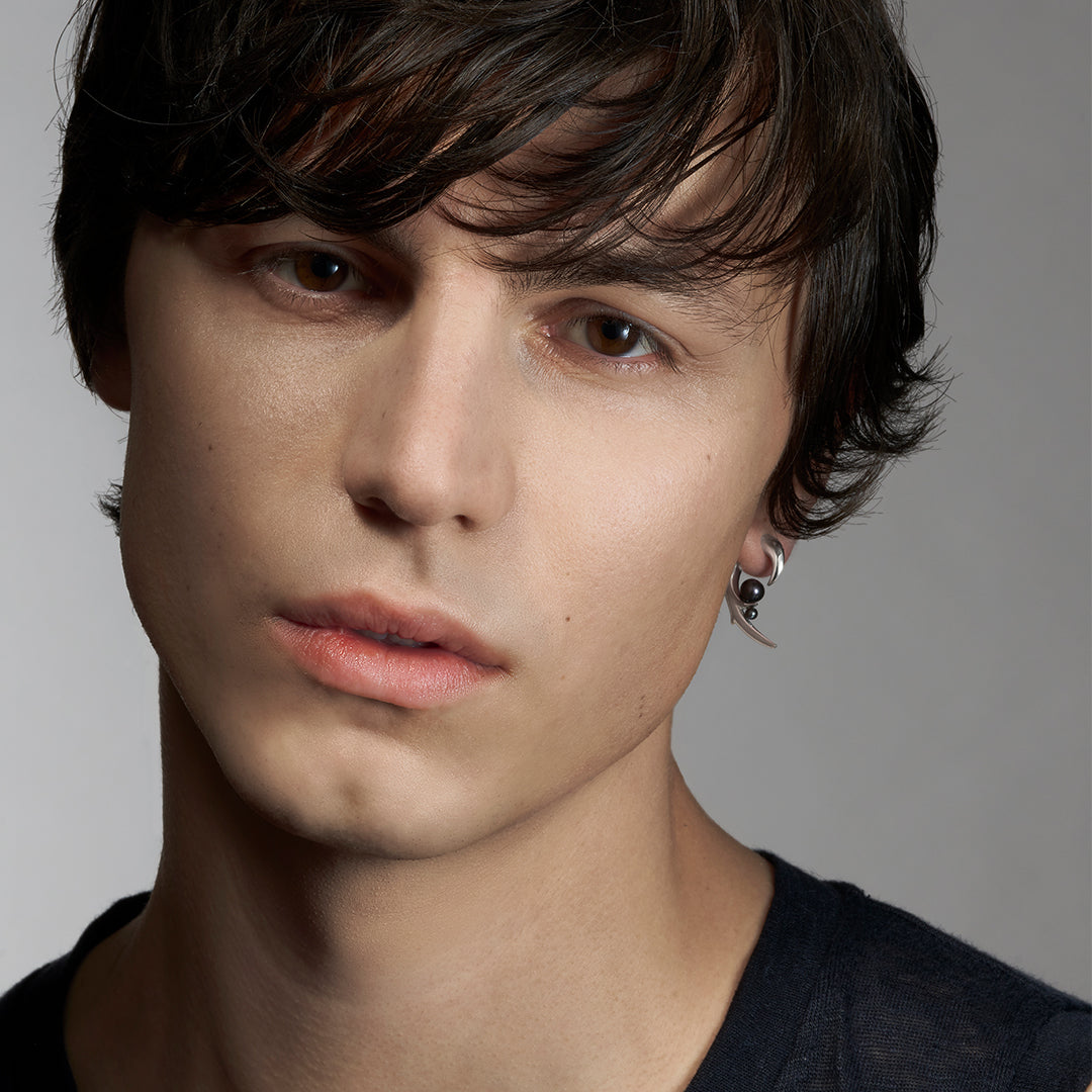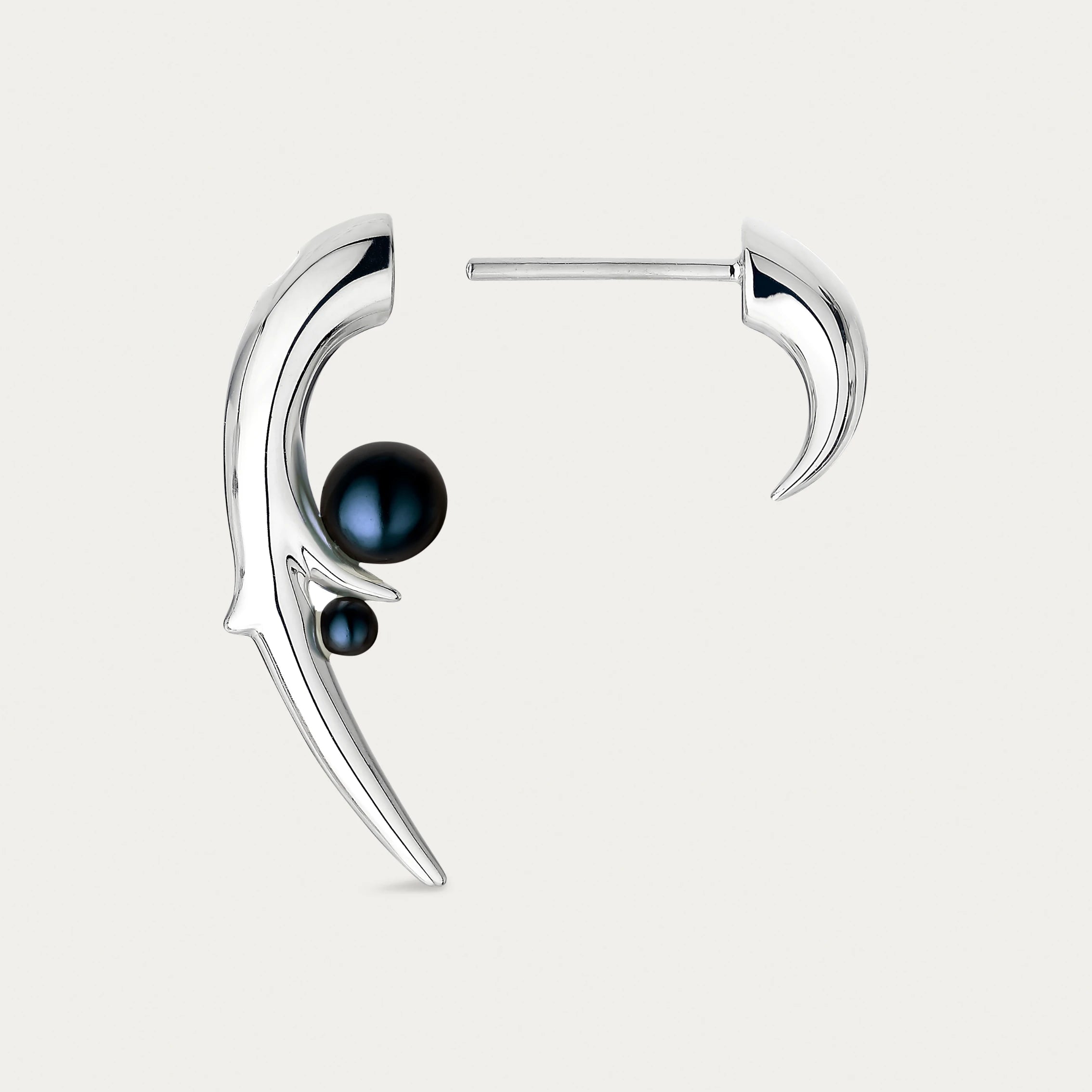 Hook Earrings in sterling silver with freshwater black pearl.