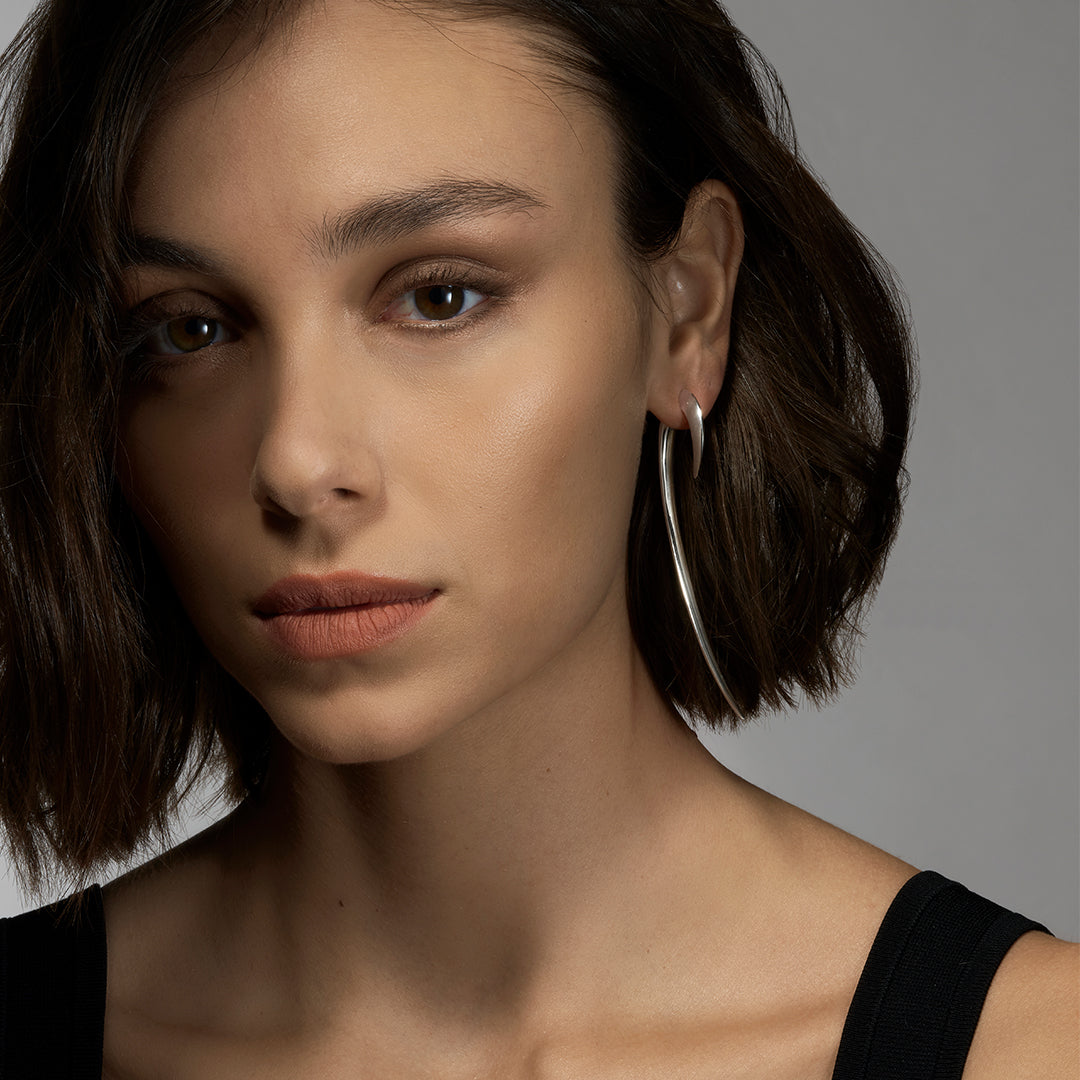 At 91mm, it is dramatic & defiant. It dresses the neck, frames the face and delivers an attractive level of remarkableness. An iconic silhouette of the House, the Hook earring features a strong line and a gentle tapered curve, and that all important knife edge to add lightness and intrigue. Fly Solo. Unmistakably Shaun Leane.