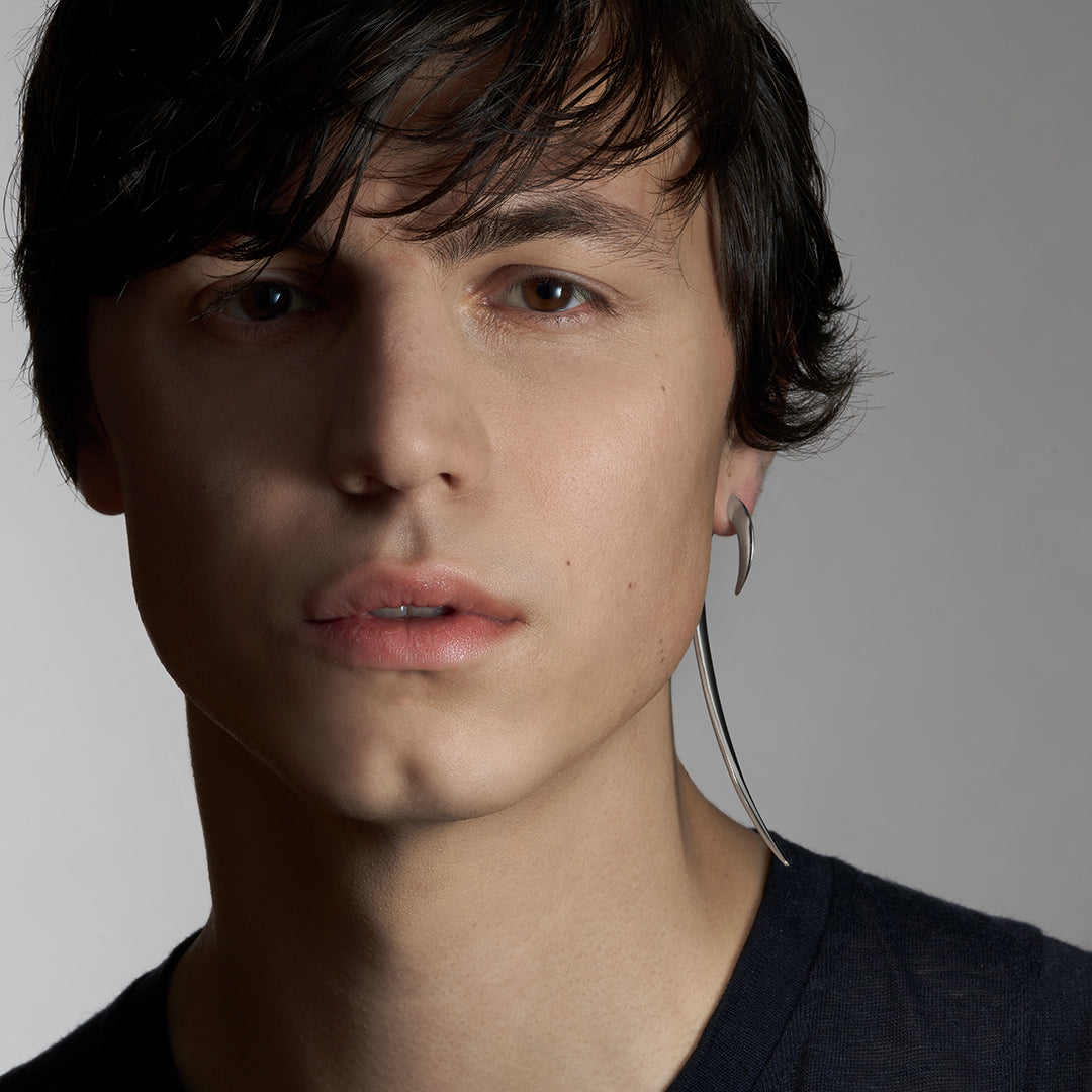 A new edition to the family! Introducing the size 3. At 91mm, it is dramatic & defiant. It dresses the neck, frames the face and delivers an attractive level of remarkableness. An iconic silhouette of the House, the Hook earring features a strong line and a gentle tapered curve, and that all important knife edge to add lightness and intrigue. Fly Solo. Unmistakably Shaun Leane.