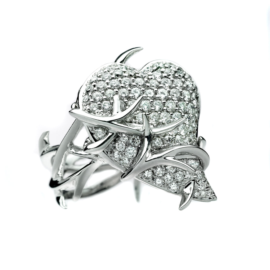 Impassioned is an Art Nouveau inspired capsule collection, celebrating a deep devoted love. A daring pointed heart, scintillating in diamond pave, that is captured and entwined in a thorn-laden vine. This is a ring like no other, the diamond pave heart opens up to reveal a secret hideaway for a cherished keepsake of your beloved. A piece that expresses the importance to be in love, and to be loved. Wholeheartedly. It's an Impassioned declaration of love.