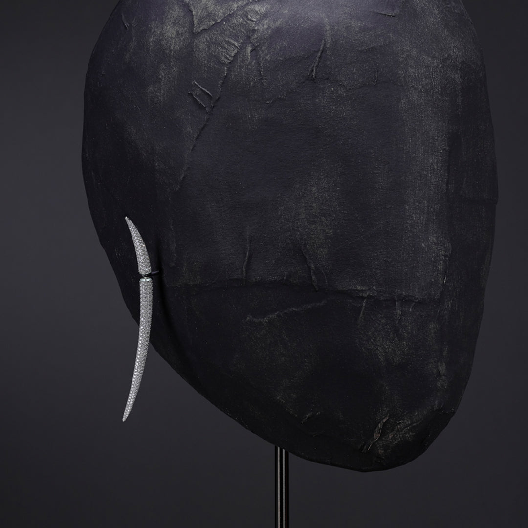 This Palladium pair of Quill Diamond earrings showcases the greatest possible precision of the modern jewellers craft. Elegantly set with more than 1,000 brilliant cut diamonds to completely cover the porcupine-inspired quill shapes, these earrings have 360-degree appeal and the perfectly proportioned spikes frame the face with dramatic impact. Note that this style traces back to the provocative pieces designed by Alexander McQueen's SS03 show, Irere.