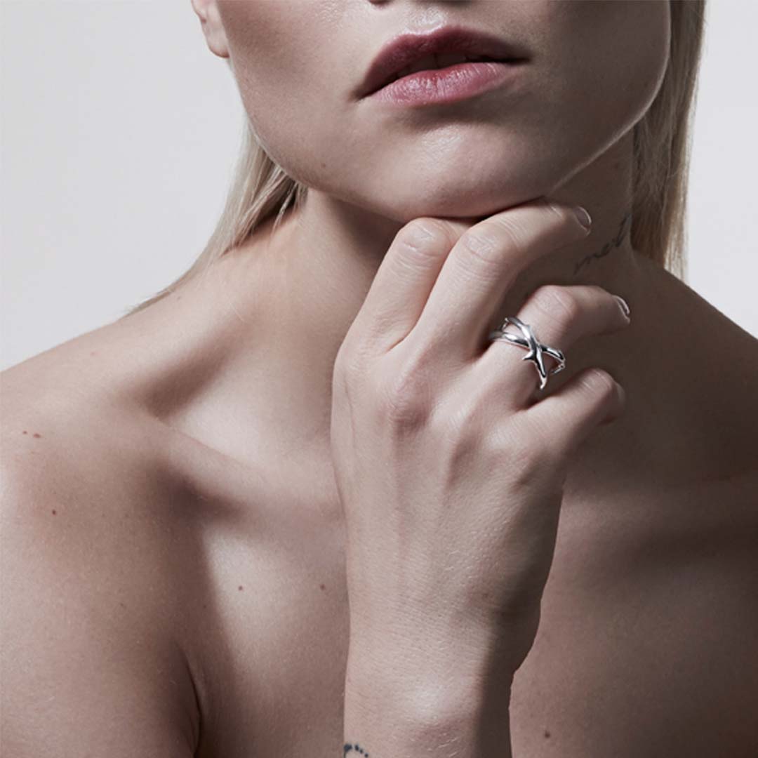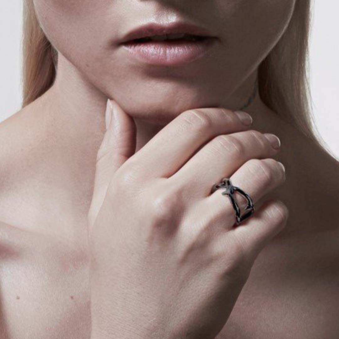 Rose Thorn Double Band Ring in sterling silver.