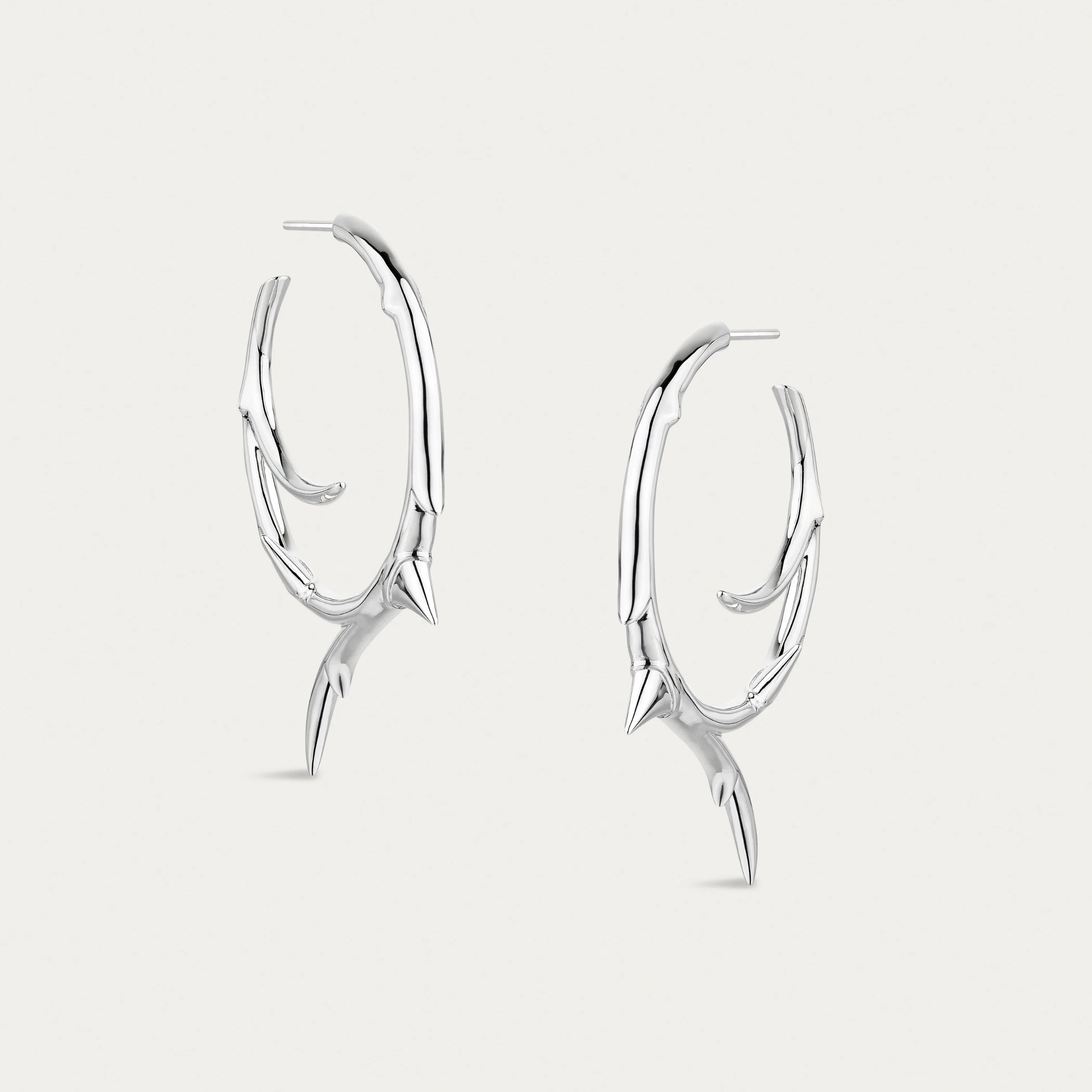 Rose Thorn Medium Hoop Earrings in sterling silver.