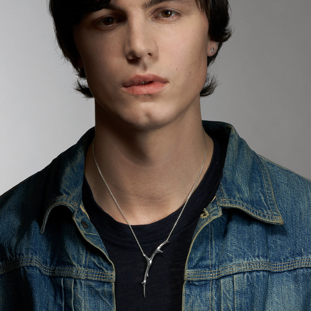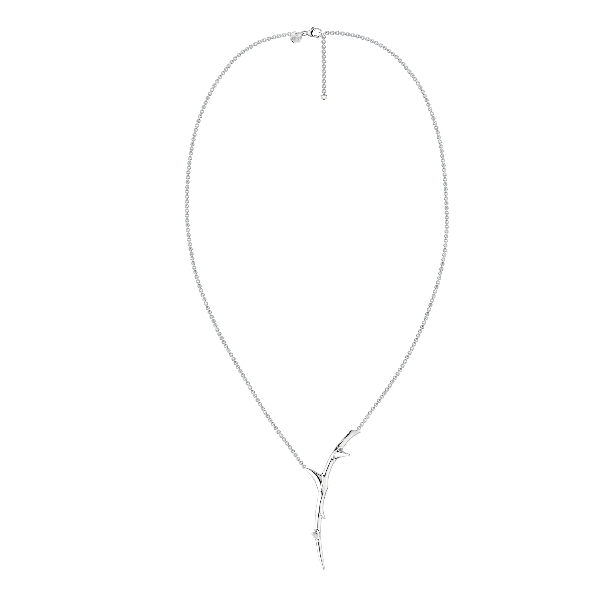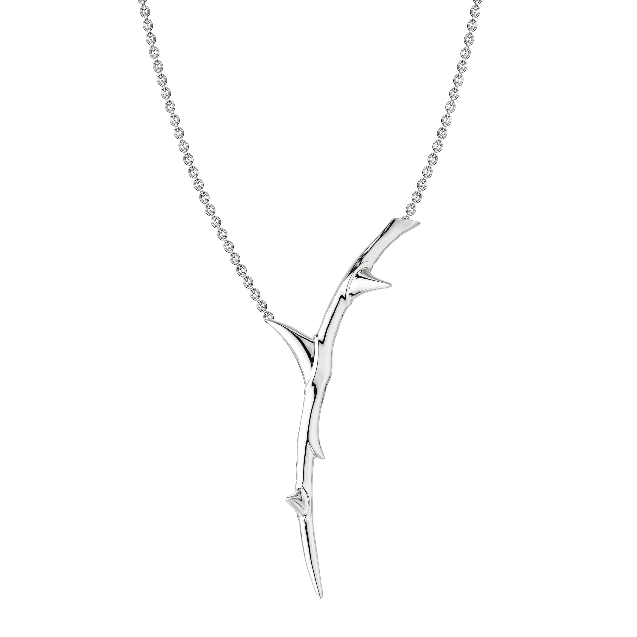 Rose Thorn's sterling silver metal vines drop to wrap around the neck. A pendant, replicating organic shapes found in nature, to ignite passion and desire.