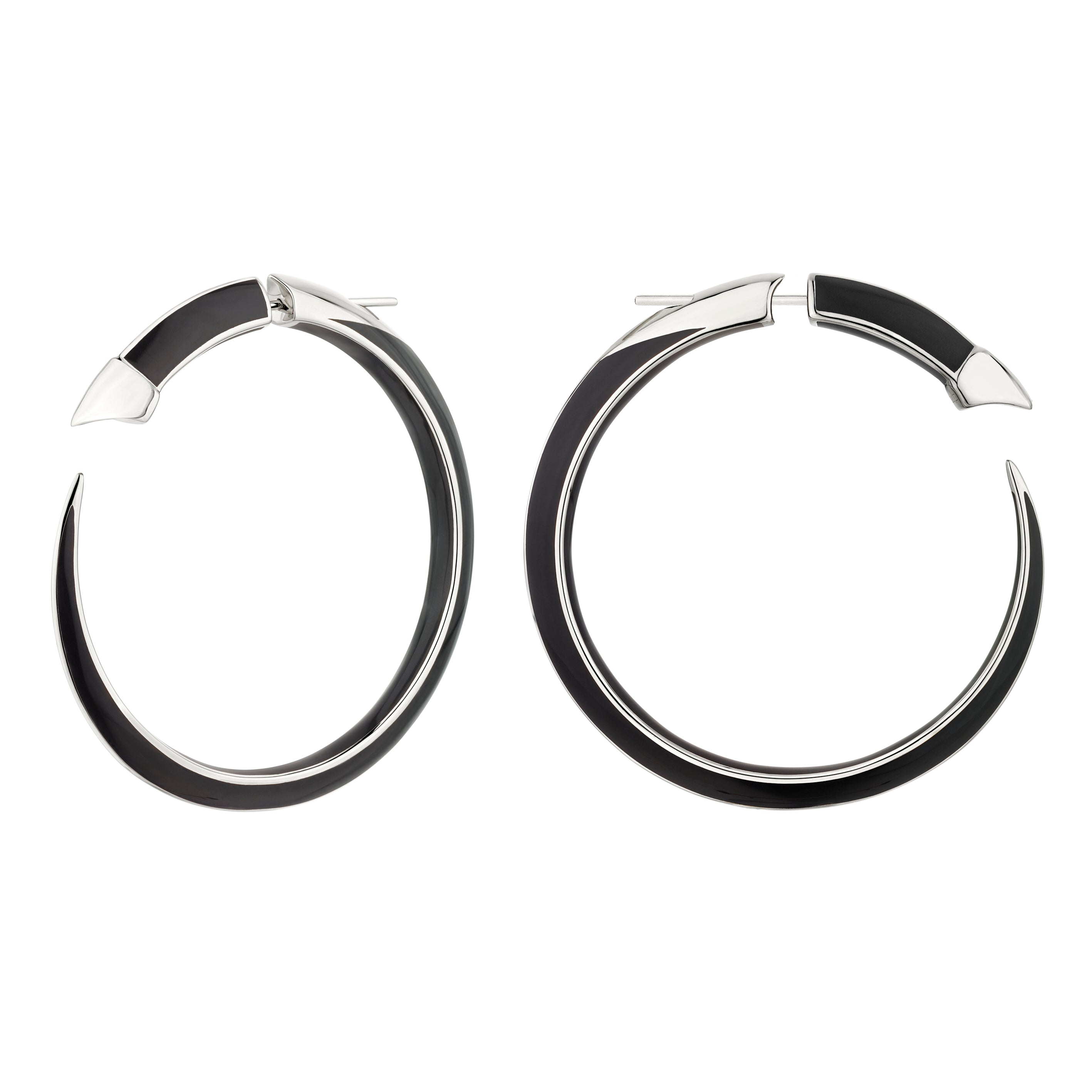 Sabre Solis Statement Hoop Earrings - Silver & Jet Ceramic
