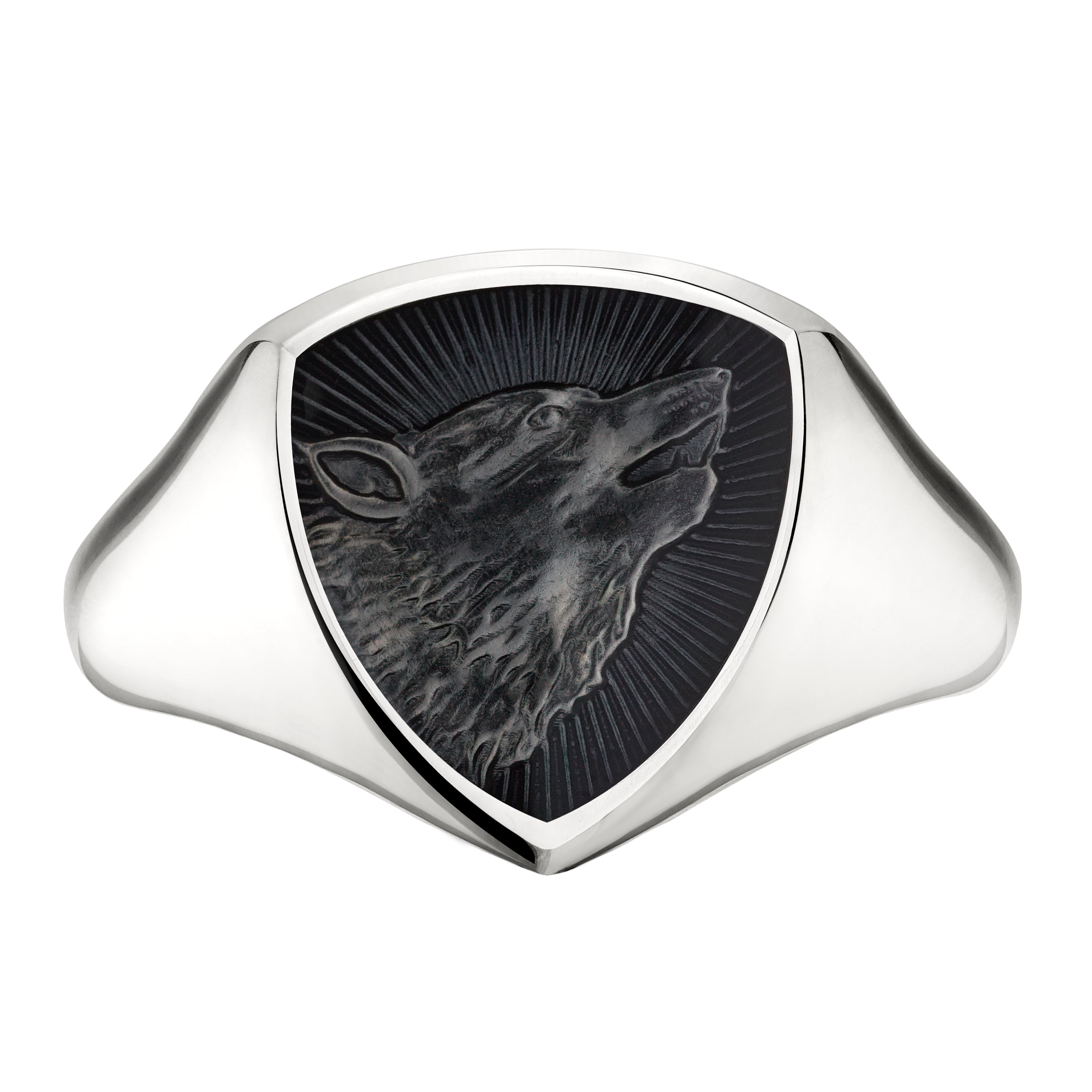 Signum Bravery Wolf Ring - 18ct White Gold & Nightfall Enamel