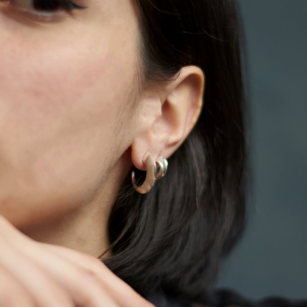 Handcrafted from sterling silver, Talon Cat Claw Medium Hoop Earrings are a cool alternative to silver hooped earrings. Talon Cat Claws hug the ear in an elegant clasp, coiled curves of sterling silver, hesitant, like the retracted claws of a cat, curling to a sharp point. In a medium size, with a longer 20mm drop, Talon Cat Claws evoke natural habitats and a colourful constellation, giving you universality and wearability. Talon sits at the heart of our House code, Fauna; a focus on organic silhouettes - fossils, feathers, bones and claws - jewels with an aura, rendered with care and precision. More pronounced than Talons, Talon Cat Claws curl into the ear with a tight fit. Talon Cat Claws integrate with your body - snug, discreet - somewhere between a stud and a hoop, piercing the lobe or upper lobe. Layer up with larger Talon Cat Claws, or keep it simple.