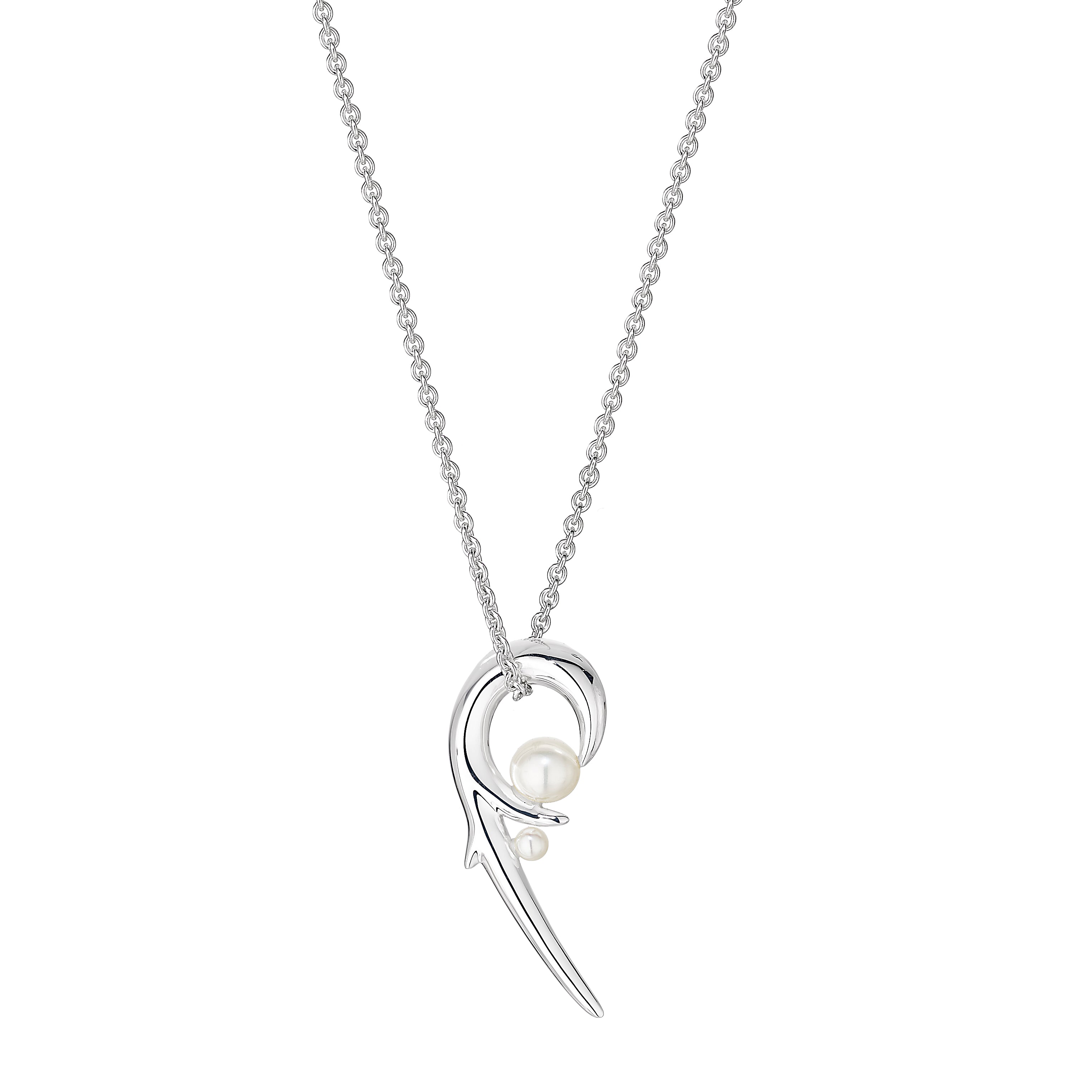 Handcrafted from sterling silver, a large freshwater pearl and a small freshwater pearl, our Hooked Pearl Pendant captures an ethereal light - but with the daring edge synonymous with the House of Shaun Leane. Our contemporary spin on the classic pearl necklace is a sleek proposition for the décolletage - soft lines and perfect pearls, suspended from the finest of chains. The Hooked Pearl silhouette is key - curled, curvilinear, generous - fusing punk-drama with pure elegance, by the enclosing of freshwater pearls. Adjustable to two lengths.