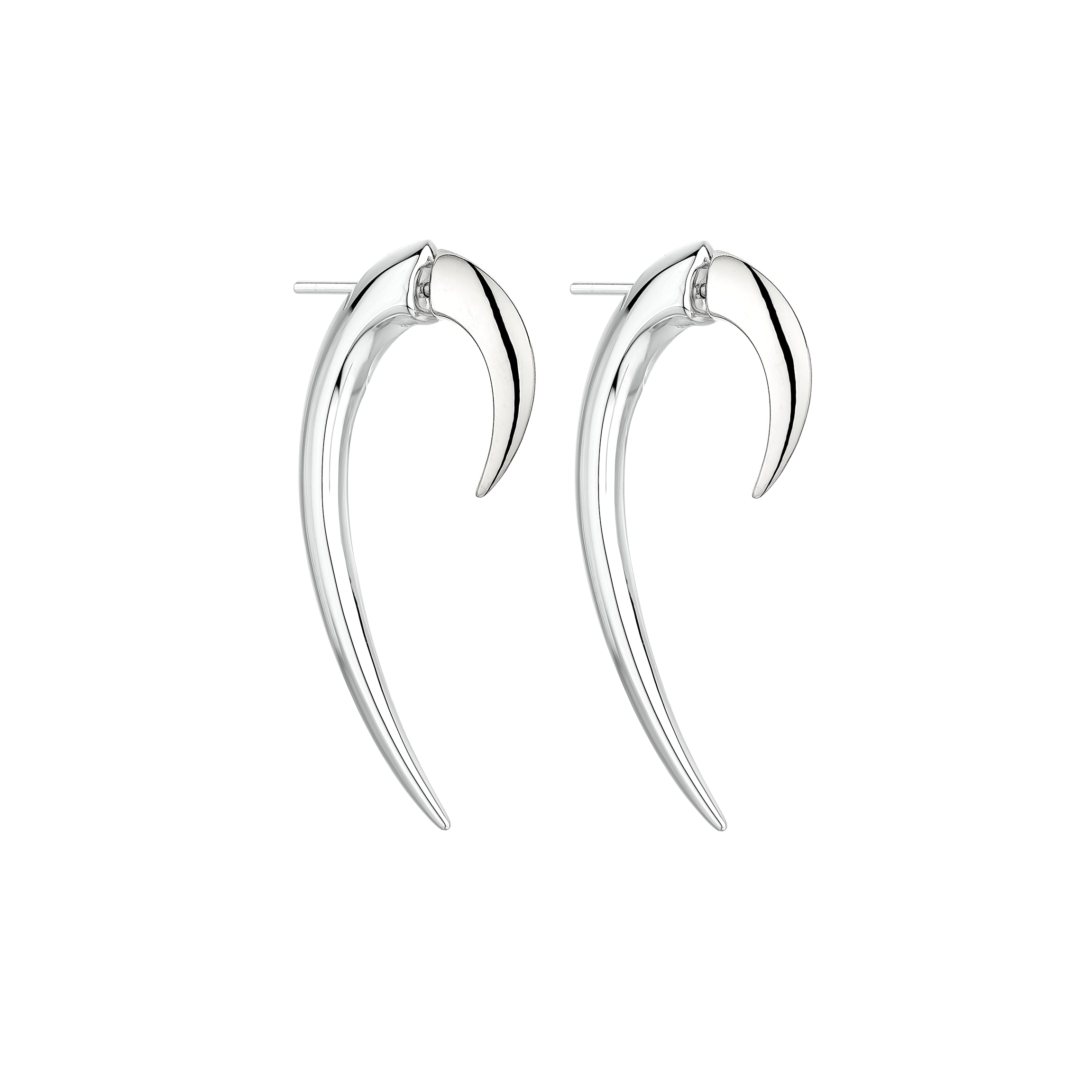 Handcrafted from sterling silver, our Hook Size 1 Earrings are collectible pieces you can wear everyday. Hooks innovative design is a two-piece construction, seamlessly fitting together front to back, creating a refined shape around the ear, securely fastened in place. Our Hook Earrings are bestsellers; defined by their knife-edge, creating light refracting facets on the jewels surface, their refined shape follows a powerful curvilinear line. Leane distills his iconic silhouette into inclusive, contemporary pieces that invite curiosity and intrigue. The Size 1 has a relaxed 38mm drop, giving you easy wearability and a refreshing alternative to silver drop earrings. Available as pairs and as single earrings.