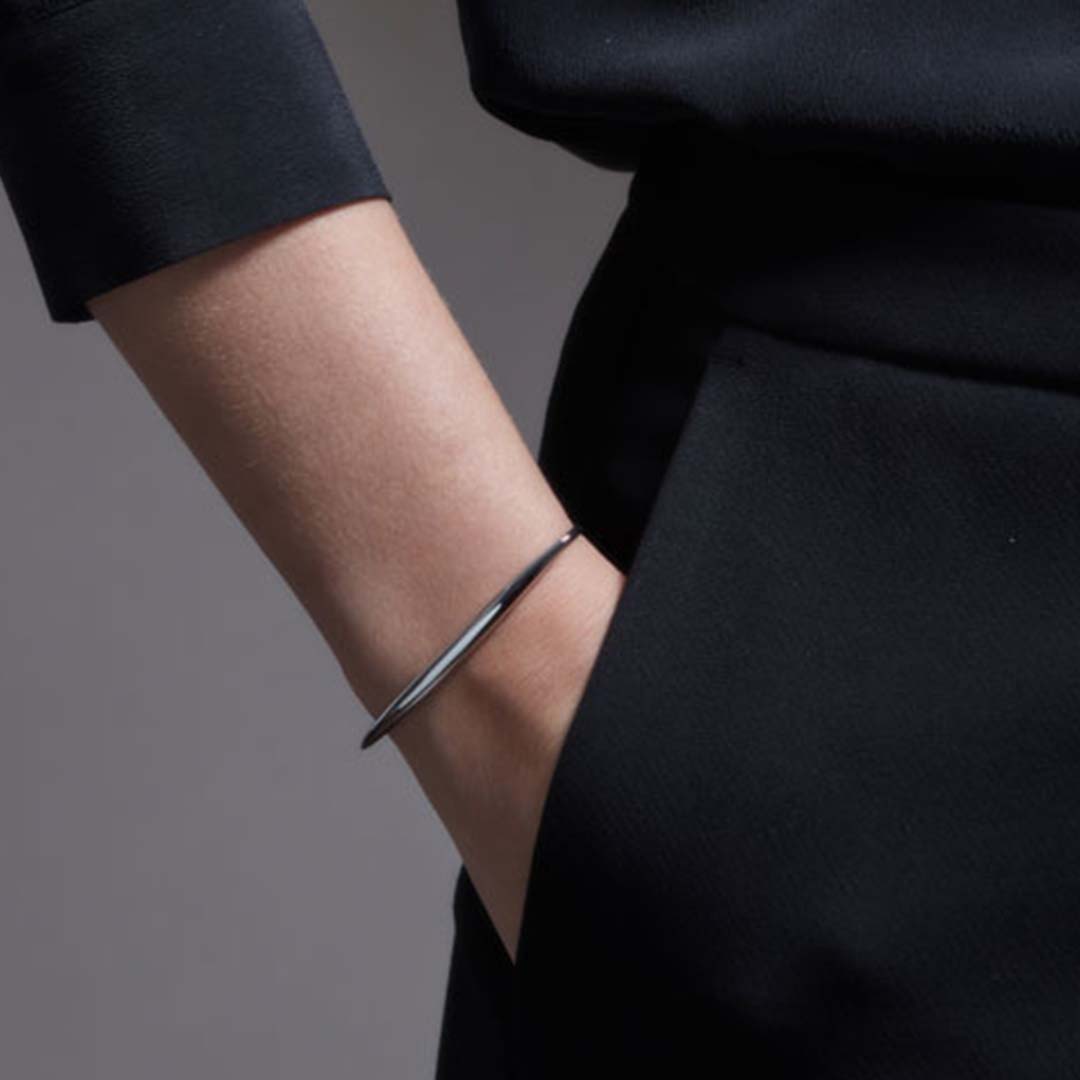 Quill Bracelet is handcrafted from sterling silver. Sculptural and sensual, Quill is an articulated shape, its curves capturing the light, drawing attention to the piece. Across the wrist, a finessed silhouette of silver - suspended from a subtle silver chain, adjustable to different sizes. Quill Bracelet has heft, sensuality and tactility, taking a provocative shape, then making something minimalist. The perception is a considered one, the silhouette appearing to glide across the skin in a sensuous movement. Quill pieces are contoured to your body, designed to flow in sync with the wearer.
