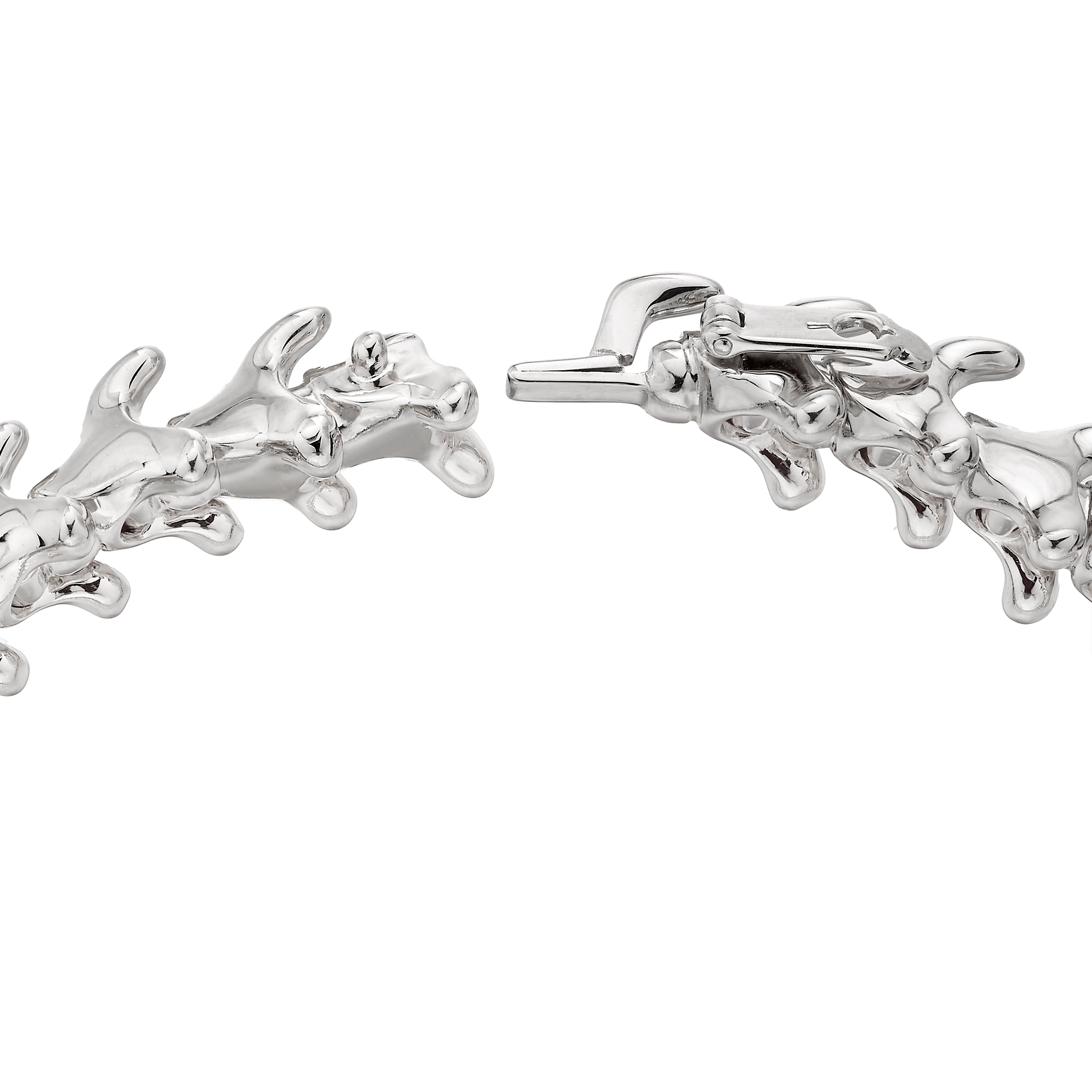 Handcrafted from sterling silver, our Serpent's Trace Slim Bracelet takes inspiration from the aluminium Coiled Corset Shaun Leane made for Alexander McQueen. Articulated sterling silver pieces of interconnected boneeffect the serpent undulating across your skin and coiled to your wrist, ensnared in a slither. With a subtle diameter of 7mm, our slimline bracelet fastens with a hidden safety catch. The silhouette of the bejewelled serpent vertebrae took our Mayfair team of trained goldsmiths four years to perfect. Technically masterful, Serpent's Trace Bracelets move with the wearer, built to stack harmoniously up your wrist in a variety of precious metal finishes. Our House code, Fauna, breathes life into bedazzled, anatomical structures that are sensual, visceral - kinetic. Cherish, adorn and raise your own brood.