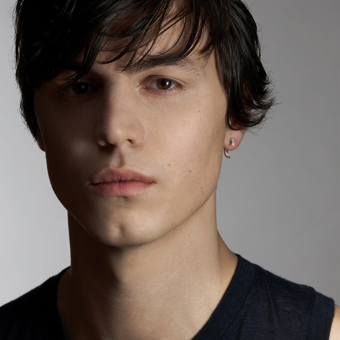 Talon Fine Earrings are handcrafted from 18ct white gold and 0.48cts of brilliant white diamonds. The Talon Fine collection takes a renowned silhouette of perfect knife-edged curves and fuses unbound imagination. A contemporary take on hoop earrings, the inclusion of diamonds - at tip and tail - offers a precious alternative, with luxurious pieces to suit all tastes. Precision-set pave diamonds draw light towards the face, providing a further layer of sophistication, taking you through to evening. Expect perfection.