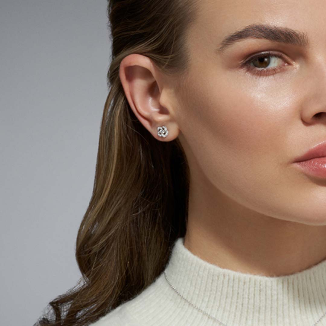 Entwined Petal Flower Earrings - 18ct White Gold & 0.10ct Diamond