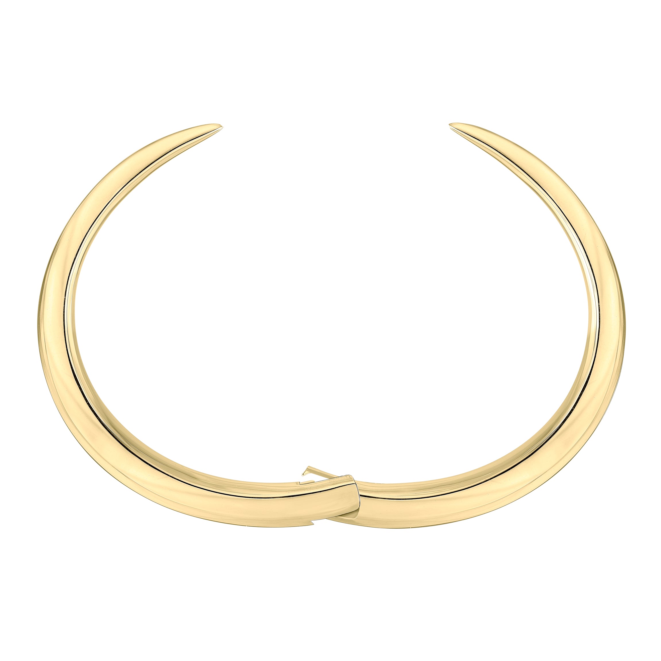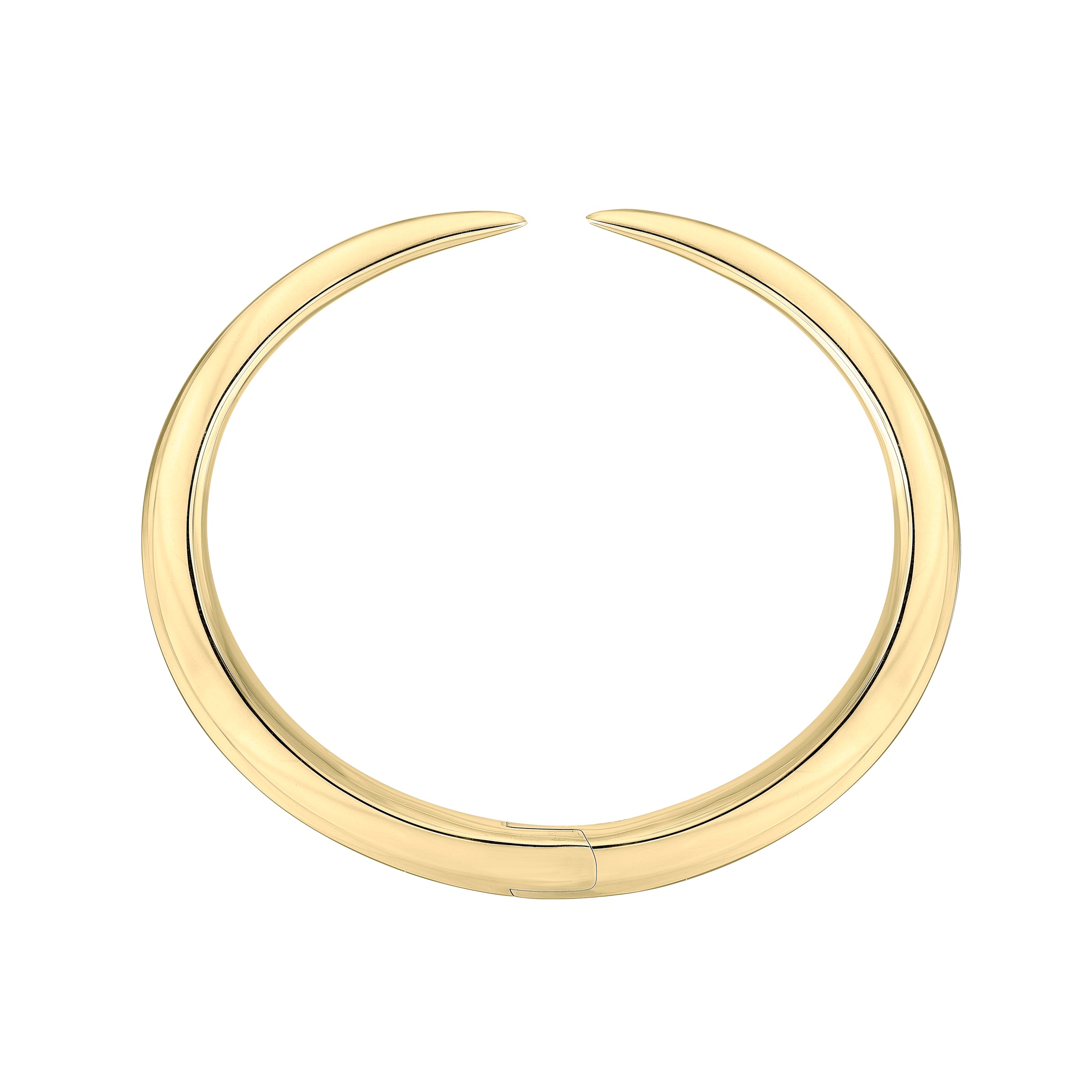 Sabre Deco Cuff Bangle is handcrafted from yellow gold vermeil. Sabre Deco is Sabre's powerful arc emboldened, combining a high-contrast of hybrid materials with couture elegance. With rounded, generous proportions and of some heft, an elegant curve of yellow gold vermeil encloses the wrist incorporating all of Sabre Deco's signatures; gentle graduations, snaked proportions, hand-grooved ridges and tapering at both ends to a gentle point. A discreet hinge mechanism allows for the cuff to be taken on and off with ease. Sabre Deco pieces are bright, vigorous jewels, combining geometric materials to create simple, precise configurations. Delicate detailing such as hand-carved facades and a 360 degree knife-edge finish are exquisite touches. Our House code, Line, inspires a collection of engineered silhouettes, with sharp lines, architectural blocking, stature and solidity all hallmarks of Shaun Leane's take on modernism for the 21st century.